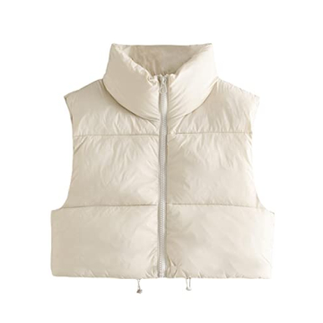 Athlisan Womens Cropped Puffer Vest Zip Up Stand Collar Sleeveless Padded Crop Vests