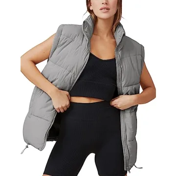 Athlisan Womens Zip Up Puffer Vest Stand Collar Sleeveless Padded Jacket Coat(Grey-S)