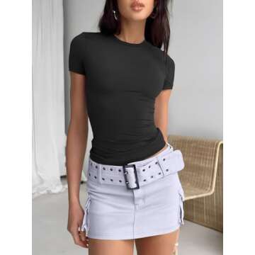 ATHMILE Womens T Shirts Casual Basic Going Out Tops Summer Slim Fit Short Sleeve Spring Crop Tops Crew Neck Tight Y2k Fashion Teen Girls 2024 Black, Small