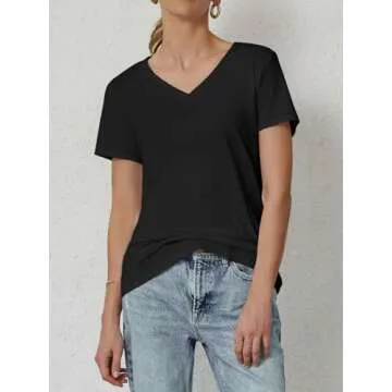 ATHMILE Women's Short Sleeve V-Neck Tee: Summer Fashion Essential, Soft Casual Wear