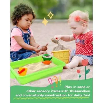 AtMini Sensory Bin Sand Tray with Lid for Toddlers 2 Pcs 15in Portable Sandbox Toy Large Plastic Tray for Kids 3 4 5 6 Fill with Sand, Water, Beads, and More (Green+Blue)