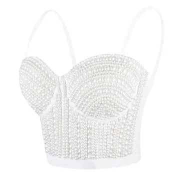 Stunning atokiss Women's Pearls Beaded Bustier Crop Top - Perfect for Parties!