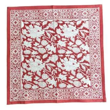 The napkins are handcrafted with meticulous attention to detail, featuring a stunning floral pattern inspired by the rich heritage of French Provencal art. Each piece is individually hand printed using the age-old technique of hand block printing. Skilled artisans from India bring these napkins to life by using intricately carved wooden blocks, making every napkin a unique work of art. The subtle variations that arise from this traditional method enhance their beauty, giving you one-of-a-kind dining essentials.