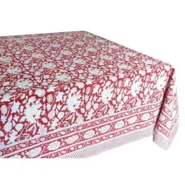 Show moreTransform your dining experience with the exquisite ATOSII Meraki Red 100% Cotton Tablecloth. Crafted from premium quality cotton using power loom fabric, this tablecloth boasts a strong, tight, and smooth weave that is both durable and elegant. Measuring 60 x 90 inches, it's perfectly sized for a standard 6-foot rectangular table and is designed to enhance every occasion with its stunning floral design inspired by French Provencal Art. Each piece is handmade with care, showcasing the artistry of traditional wooden block printing, ensuring that your tablecloth is not just a functional item but a true work of art.