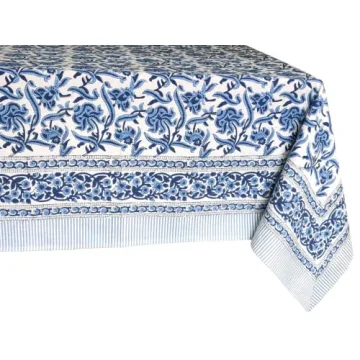 The block print design, inspired by the intricate motifs of the Mughal dynasty, features a beautiful array of botanical patterns that instill a sense of nature's beauty into your dining decor. This tablecloth is not just another home accessory; it represents a labor of love handcrafted by skilled artisans in India, where every piece tells a story through slight irregularities that signify its unique artisan origins. The fabric is preshrunk and finished with neat stitched hems, ensuring it withstands multiple washes while maintaining its vibrant colors.