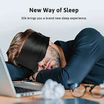 ATreebag Silk Sleep Mask for Women Men, Mulberry Silk Eye Sleeping Mask & Blindfold with Adjustable Velcro Strap, Blackout Eye Cover for Sleep Travel Yoga Nap, Large Size, Black