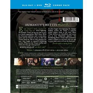 Show moreImmerse yourself in the exhilarating world of anime with this stunning Attack on Titan Complete Box Set. This elegantly packaged set is not just a collection of episodes but a treasure trove of materials designed for both the seasoned fan and newcomers alike, offering a perfect blend of entertainment and collectible charm. The centerpiece is a dual-format disc selection, featuring two Blu-ray discs and two DVD counterparts, ensuring you have flexibility no matter your viewing preference. Complementing this collection is a beautifully detailed booklet filled with captivating images from season two, which will allow every fan to relive their favorite moments in style.