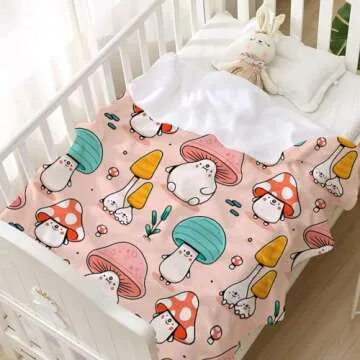 Atthadassi Cute Mushroom Head Soft Blanket All Season Throw Blanket Fleece Blankets Bed Sofa 60"x50"