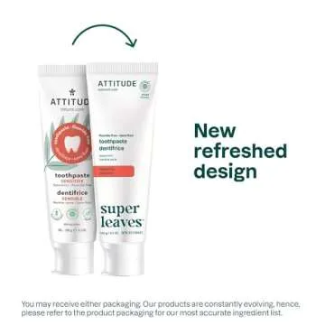 ATTITUDE Fluoride-Free Toothpaste, Plant- and Mineral-Based Ingredients, Vegan, Cruelty-Free and Sugar-Free, Sensitive, Spearmint, 4.2 Oz