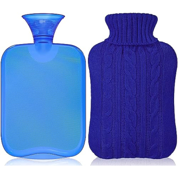Attmu Hot Water Bottle with Knitted Cover - 2 Liter Transparent Hot Water Bag in Blue