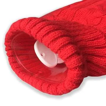 Attmu Hot Water Bottle with Cover Knitted, Transparent Hot Water Bag 2 Liter - Red