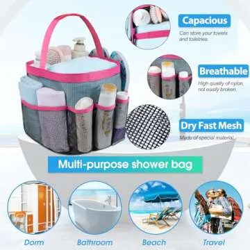 Attmu Mesh Shower Caddy Portable for College Dorm Room Essentials with 8 Pockets, Hanging Shower Caddy Dorm Basket, Quick Dry Shower Bag for Bathroom