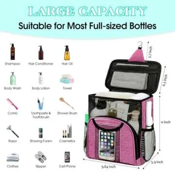 Show moreIntroducing the Attmu Portable Shower Caddy College Tote Bag – the perfect solution to your bathing and organizing needs! Designed with students and adventurers in mind, this shower caddy measures 11.4” x 9.84” x 5.9”, providing ample space for all your daily essentials. Its large capacity allows you to fit full-sized shampoo and body wash bottles alongside skincare products and other bathroom accessories, ensuring you have everything you need at your fingertips. Whether it's for the campus dorm or a camping adventure, this shower caddy combines practicality with style, offering a sophisticated yet vibrant pink hue that appeals to both boys and girls alike.
