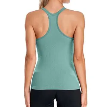 ATTRACO Built in Bra Tank Top for Women Ribbed Workout Tops Running Fitness Shirts Green M