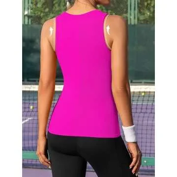 ATTRACO Exercise Tops for Women Sleeveless Running Shirts Loose Fit Yoga Athletic Gym Sports Hot Pink Medium