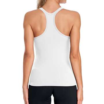 ATTRACO Seamless Workout Tank Tops for Women Racerback Athletic Tank with Built in Bra White