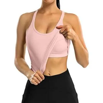 ATTRACO Yoga Tank with Built-in Bra for Women - Seamless Ribbed Workout Crop Top in Pink XL