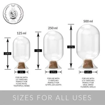 Atzi Glass Match Holder with Striker - Fancy Matches in a Jar Cloche Decorative Home Decor Gifts - Round Head Bottle - Match Striker Bottle for Matches, Shabbat Matches Included