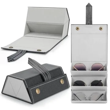 Show moreIntroducing the Aubeco Travel Sunglasses Organizer - your ultimate solution for stylishly organizing and protecting your sunglasses and eyewear. Designed with the modern traveler in mind, this portable and foldable sunglass holder packs impressive functionality into a sleek, easy-to-carry format. The multiple slot system conveniently accommodates up to three pairs of sunglasses or eyeglasses, ensuring that your favorite styles are always within reach. The robust hard case structure provides reliable protection against impact and scratches, while the outward PU leather finish lends an air of sophistication, making it not just practical but also a statement accessory. Its lightweight build makes it a fantastic travel companion, perfect for individuals who appreciate both aesthetics and efficiency in their everyday carry.