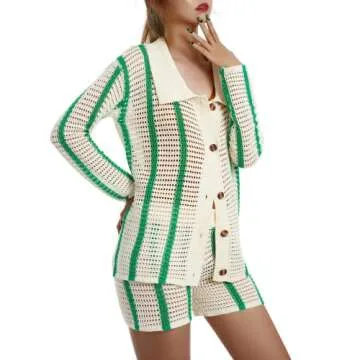 Show moreIntroducing the Auciho Y2K Crochet Knit 2-Piece Set, a must-have for any fashion-forward individual looking to make a statement this season! This stunning set includes a hollow-out color block button-up oversized shirt combined with high-waisted ribbed knit shorts, effortlessly blending style and comfort. Made from high-quality materials, this outfit features a unique crochet knit design that not only highlights your figure but also provides optimal warmth for the cooler months.