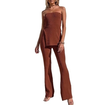 - Stylish Design: Features a sexy strapless tube top and high-waist pants that create a fashionable silhouette.