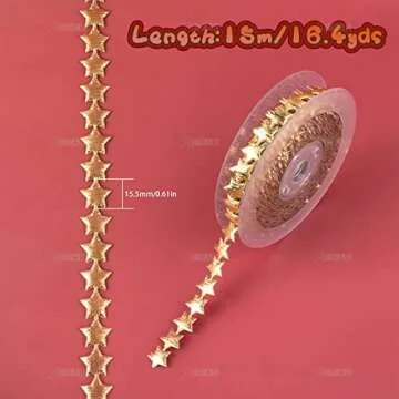 AUEAR, Polyester Star Ribbon Trim Gold Decorations Embellishment for Holiday Wedding Gift Cake Wrapping