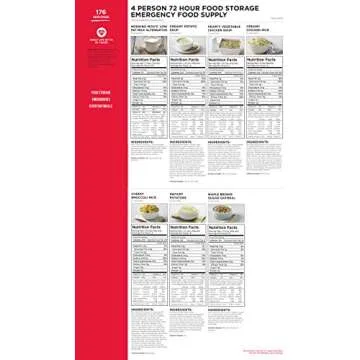 Show moreIntroducing the Augason Farms 72-Hour 4-Person Emergency Food Storage Kit, a vital addition for those who prioritize preparedness without sacrificing quality and taste. This remarkable kit weighs only 14 lbs 7 oz and is designed to sustain up to 4 people for several days, making it a perfect solution for families, outdoor enthusiasts, and anyone looking to be ready for any situation. With 176 servings packed into a durable bucket, you can confidently stock up on essential supplies designed to last.