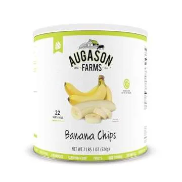 Show moreIntroducing the delectable Augason Farms Banana Chips, the ultimate snack that combines taste and convenience! Perfectly packaged in a #10 can, these banana chips support a long-lasting shelf life of up to 10 years, making them your go-to choice for emergencies, camping trips, or simply as a delightful treat at home. With 22 servings and a whopping 5,280 calories, they offer both nutrition and enjoyment in every bite.