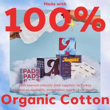 August Organic Topsheet Menstrual Pads, Organic Pads for Women and Anyone Who Menstruates, 32 Regular Pads with Compostable Wrappers, Fragrance Free, Hypoallergenic (1 Box of 32/2 Boxes of 16)