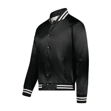 Show moreIntroducing the Augusta Sportswear Satin Baseball Jacket, a timeless wardrobe staple that effortlessly merges functionality with style. Crafted from a robust outer shell of 100% nylon satin, this jacket not only grabs attention but is built to withstand the test of time. The interior features a luxurious lining made of 100% polyester brushed tricot, ensuring that it feels soft against your skin. The addition of a sturdy snap front closure gives it a classic edge, while the striped 1x1 rib-knit collar, cuffs, and bottom band deliver a nostalgic touch that channels retro vibes.