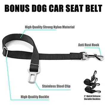 With a premium mesh visual window, your dog will enjoy fresh air circulation whether it's summer or winter while also being able to see you, which can help alleviate their anxiety on the road. Designed for safety, our hammock features four headrest straps and a nonslip backing, ensuring it remains securely in place during sudden stops or turns. Additionally, it comes with a free dog seatbelt to keep your furry buddy secure during your travels.