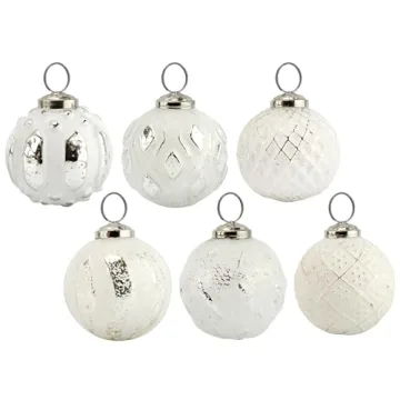 Show moreTransform your holiday décor with the captivating AuldHome Design Farmhouse Ball Ornaments. This exquisite set of six glass ball ornaments combines a vintage aesthetic with a modern farmhouse charm, making them the perfect addition to your Christmas tree or as thoughtful gift embellishments. Each ornament is crafted with a unique distressed white finish and accented with rustic tin, imbuing your festivity with a touch of old-world elegance reminiscent of exquisite mercury glass ornaments. At a delightful size of 2.9 inches in diameter and 3 inches high, they are just the right size to create a stunning visual display without overwhelming your tree's natural beauty.