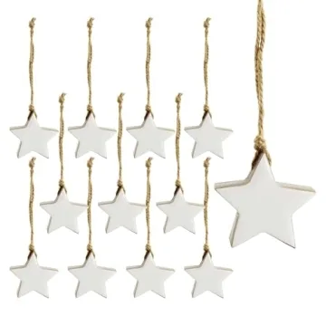 Transform your holiday decor with our exquisite collection of 12 handmade wooden star ornaments. Each star features a charming white enamel front complemented by rustic real wood sides and back, exuding a farmhouse style that seamlessly integrates into both contemporary and traditional Christmas themes. With each ornament measuring a chunky 2 inches across and 1 inch thick, they are designed to add a decorative touch to even the most modest of Christmas trees. These ornaments...