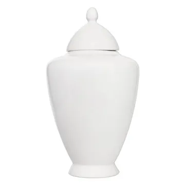 Show moreDiscover the exquisite blend of tradition and elegance with this stunning ceramic ginger jar. Inspired by the historical charm of traditional oriental ginger jars, this decorative piece serves as a perfect embodiment of cultural artistry. Its classic white finish, accompanied by smooth and rounded lines, enhances its sophisticated style, making it a suitable addition to any home decor. Whether displayed on a shelf or used as a centerpiece, this jar stands tall at 10.5 inches and spans a width of 6 inches, striking the perfect balance for any setting.
