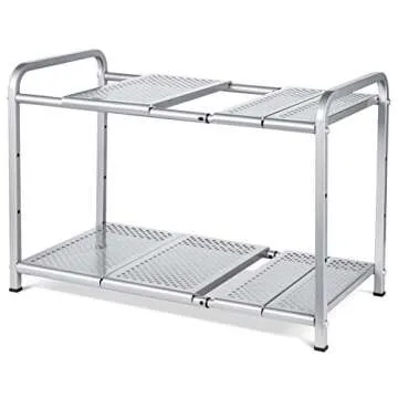 Auledio Metal Under Sink 2-Tier Expandable Shelf Organizer - Adjustable & Durable