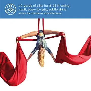 aum active Aerial Silks Starter Kit - Durable 9 Yards of Aerial Yoga Hammock with Hardware & Guide - Aerial Swing for Acrobatic Flying Yoga & All Levels (Aerial Rigging Point Up to 13ft)