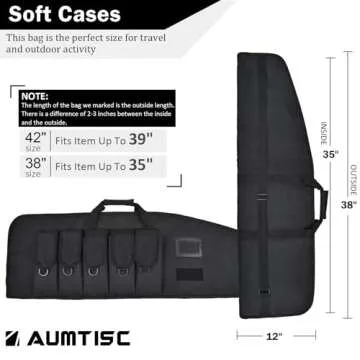 Show moreIntroducing the AUMTISC Rifle Gun Case Soft, the ultimate tactical storage solution for your firearms. Designed with the discerning gun owner in mind, this 38-inch soft case has been crafted from heavy-duty 600D polyester, ensuring your prized possessions are well-protected against wear and tear. With its generous sizing, it accommodates weapons up to 35 inches, making it ideal for both shotguns and scoped rifles.