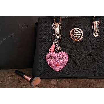 AuPra Eye Lashes Heart Women KeyRing Gift Lady Girl Crystal Love Bag Clip KeyChain Mum Tassel Rhinestone Keys Present, Pink, Large