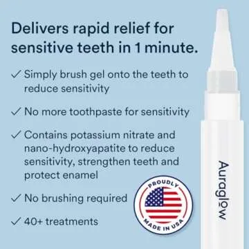 Auraglow Sensitivity Relief Serum Gel, Brush on Teeth to Reduce Sensitivity, Potassium Nitrate and Nano Hydroxyapatite, Remineralization Gel, Strengthens Teeth & Protects Enamel, 40+ Treatments, 4ml