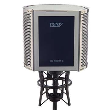 Introducing the AURAY ISO-Armor-2 Microphone Isolation Chamber, designed for audio professionals seeking unparalleled sound quality and isolation. This high-quality isolation chamber effectively reduces ambient noise and room reflections, ensuring a drier, more direct sound that enhances any recording experience. Crafted with a high-density, open-cell acoustic foam and a sleek perforated aluminum shell, this product not only performs at the highest level but also adds a modern aesthetic to...