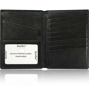 AurDo RFID Blocking Real Leather Passport Holder Cover Case & Travel Wallet for Men & Women (Black)