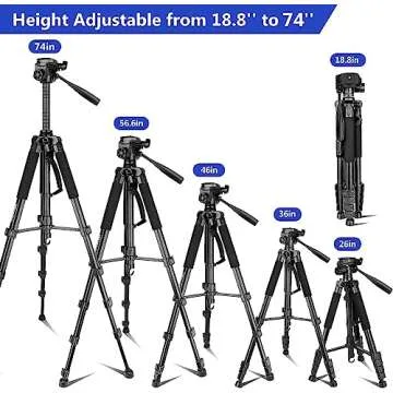 Show moreThe Aureday 74'' Camera Tripod is not merely an accessory; it's an essential companion for photographers eager to enhance their skills. Engineered from high-grade aluminum alloy and robust ABS resin, it strikes the perfect balance between durability and lightweight convenience. Its impressive height adjustment range extends from 20.87 inches to 74 inches, effortlessly catering to various shooting necessities and user heights. Whether you’re capturing breathtaking landscapes or intimate portraits, this tripod is designed to adapt to every shooting scenario you encounter.