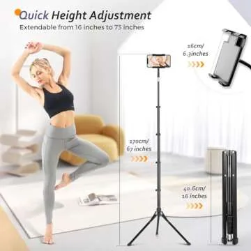 Aureday Stand Floor, 67” Height Adjustable Tripod Stand, Tablet Stand with Extendable Holder for iPad Mini/ Air/ Pro, Kindle, Switch, Smartphones, and All 4.7" to 12.9" Devices