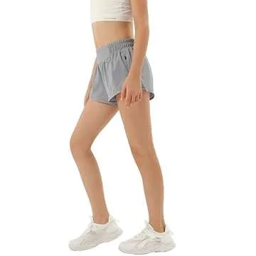 Aurefin Girls Athletic Shorts - Lightweight Running Shorts with Zip Pocket in Grey/Medium
