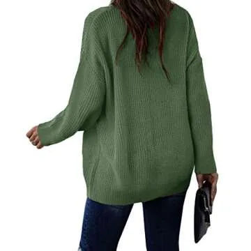 Aurgelmir Women's Cold Shoulder Long Sleeve Sweaters V Neck Cut Out Oversized Knitted Sweater Tops Green