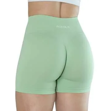 AUROLA Dream Collection Women Workout Shorts High Waist Gym Shorts, Scrunch Butt Seamless Athletic Shorts,Pastel Green,M