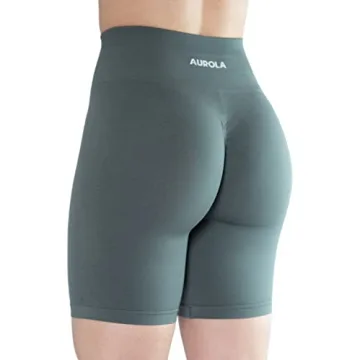 AUROLAus Workout Biker Shorts for Women Seamless Scrunch High Waist Gym Yoga Active 7.5" Bike Shorts