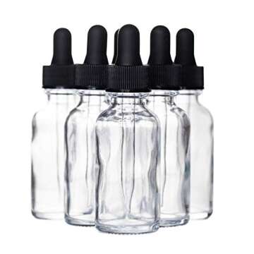 Auropack 30ml (1oz) Clear Boston Round Bottle with Glass Eye Dropper, Pack of 6