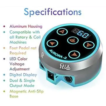 When compared to other tattoo power supplies on the market, the Aurora II shines with its unique features and robust design. Unlike typical models that offer basic voltage control, the Aurora II's dual output eliminates the need for multiple devices, while its SmartPedal technology provides versatility that others can't match. Furthermore, its durability outlasts many plastic counterparts, ensuring that this investment will serve you for years to come. The combination of a digital display with vibrant LEDs sets it apart, offering unparalleled ease of use amidst a landscape of conventional, often cumbersome options.