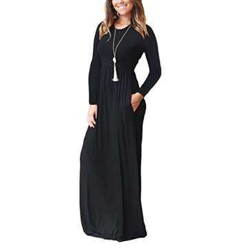 AUSELILY Women's Long Sleeve Dress Loose Plain Long Casual Maxi Dresses with Pockets 2025 New Black L